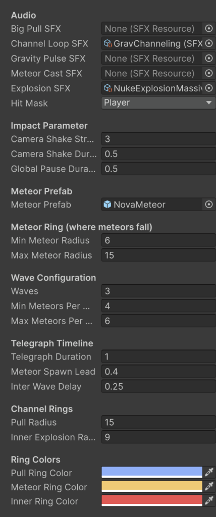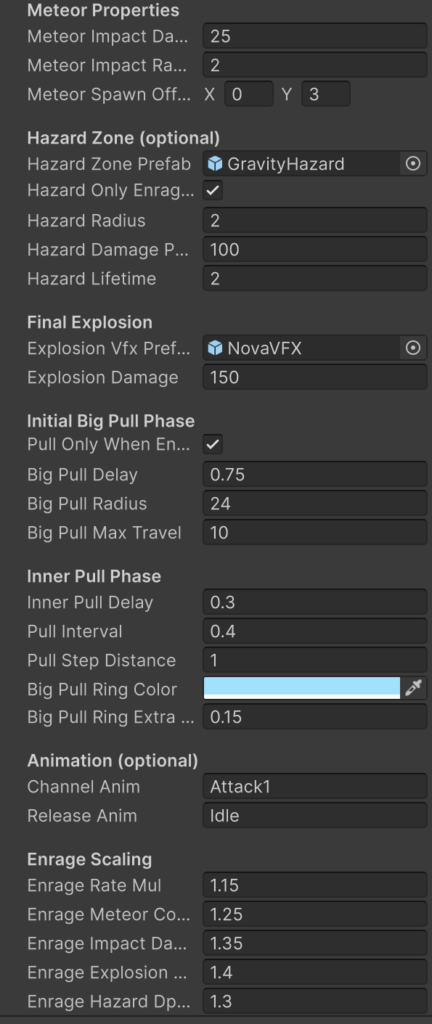 - Step2: 大きいと小さいテレグラフ2個召喚して, 詠唱開始, 特殊道具を一定範囲内で一定数で一定頻度で召喚, 大きい輪内に居る対象を小さいステップで引き寄せ続ける