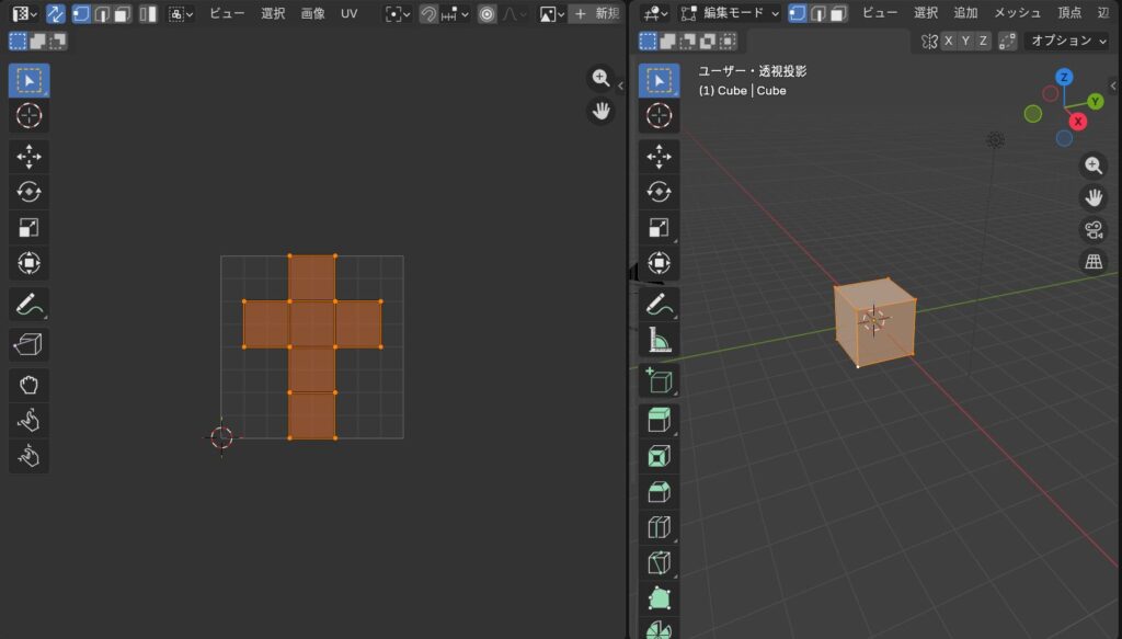 まずUV展開と画像テクスチャ、その関係について説明します。