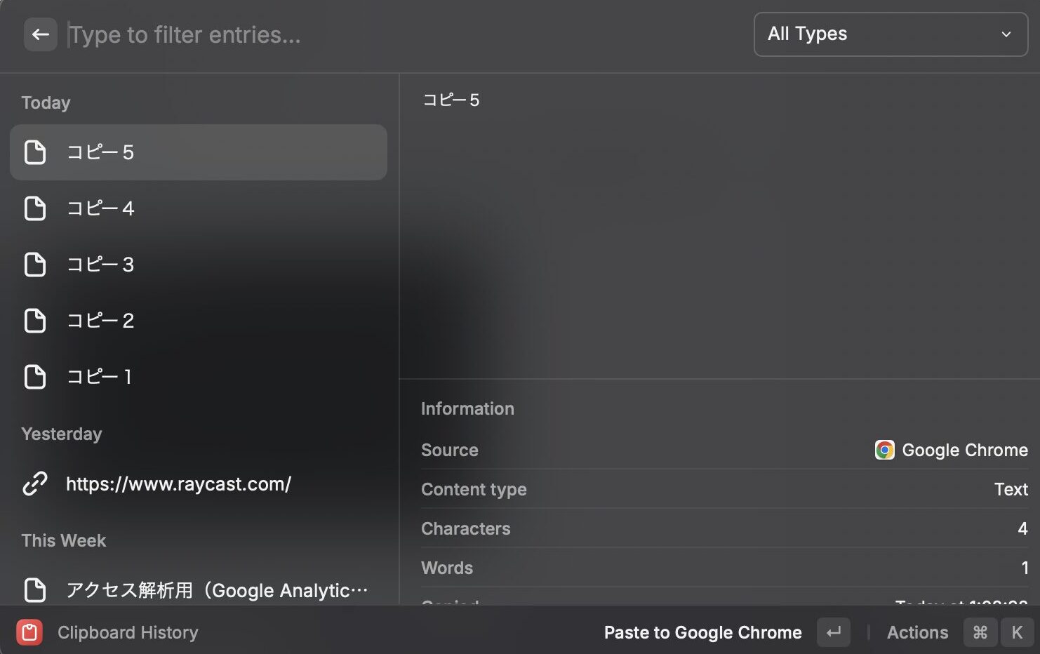 コピー履歴からすぐペーストできる機能がClipboard Historyです。