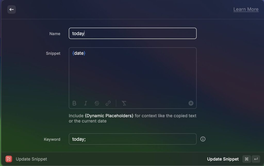 定型分を呼び出すことのできる機能がSnippetです。